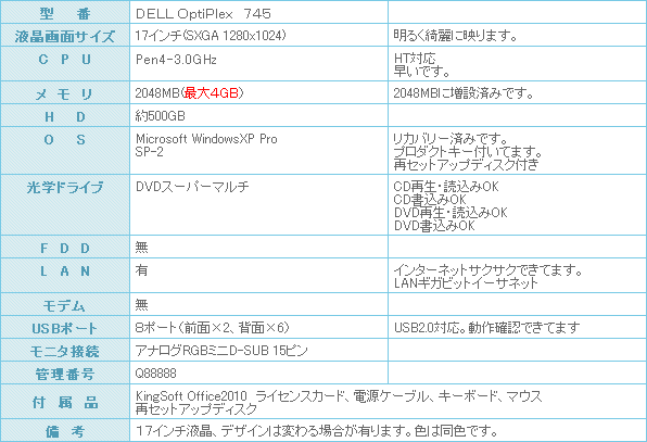 WindowsXP-Proセットアップ済みなので、到着後直ぐにご利用になれます。