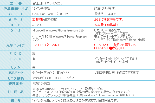 | Windows7搭載!19インチ液晶setデスクトップPCになります。