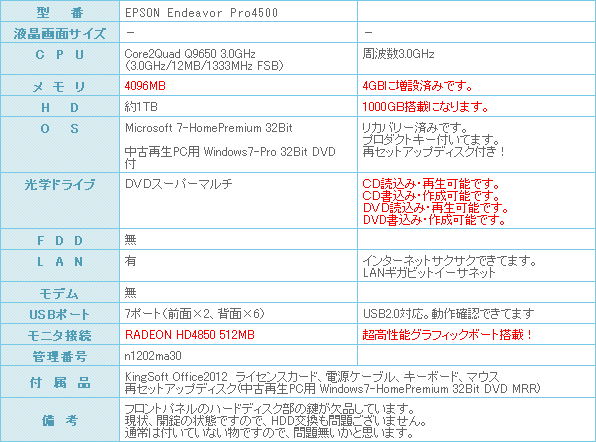 Window7-HomePremium 32bit版搭載のマシンになります。