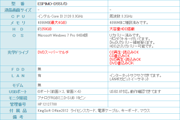 Windows7-Pro搭載のデスクトップです。メイン機の入れ替えにオススメです。