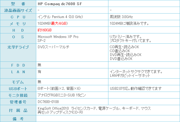 DVDスーパーマルチ搭載です。 XP-Proセットアップ済みなので、到着後直ぐにご利用になれます。 メイン機の入れ替えにも良いかと思います。