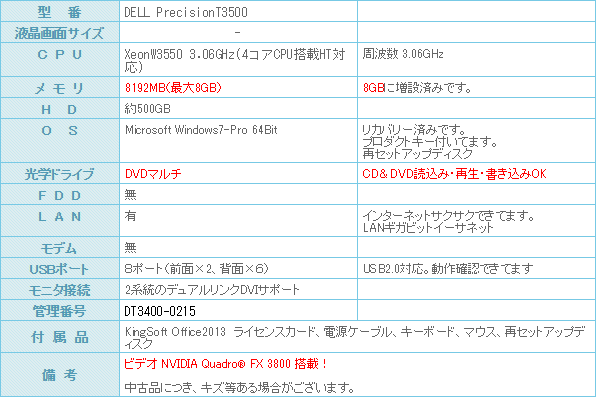 XeonW3550 3.06GHz(4コアCPU搭載HT対応)