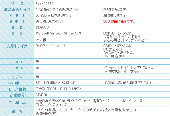 ワープロ、表計算、インターネット、メール、画像処理、DVD編集、オンラインゲームすべてこの一台でお任せ下さい。