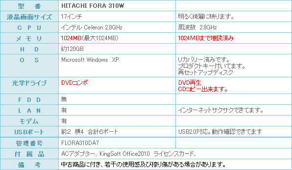 DVDコンボ搭載なので DVD再生 CDのコピーが可能です。 KINGSOFT OFFICE インストール済みです。 ワープロ機能・表計算ソフト・プレゼントテーション資料作成もバッチリOKです。 マイクロソフト OFFICE と使い方は同じです。データー互換もOKです。 希少価値が高いwindowsXP搭載のパソコンは今後どんどん減っていくと思われます。 これ1台でワープロ・表計算等オフィス付。 【KingSoft Officeインストール済み】 Microsoft officeに互換性のあるソフトです。ワード、エクセル、パワーポイントのファイルがこのソフトで開けて、編集も可能です。 kingsoftの詳細ページはこちら。