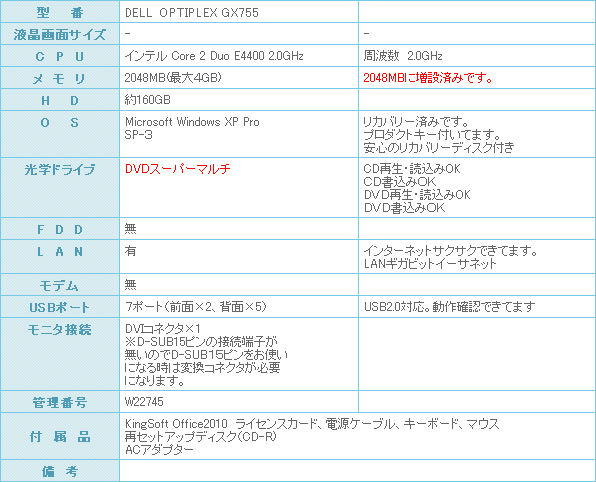 インテル Core 2 Duo プロセッサー E4400(2MB L2キャッシュ、2GHz、800MHz FSB)搭載です。
