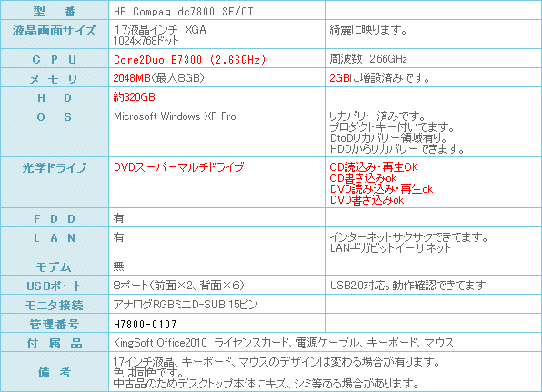 CPUはCore2Duo E7300 (2.66GHz)デュアルコア搭載!