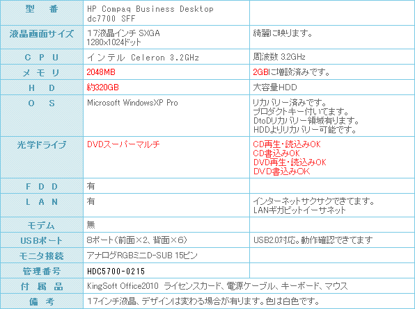 WindowsXP-Pro セットアップ済み kingsoft 0ffice 2010付