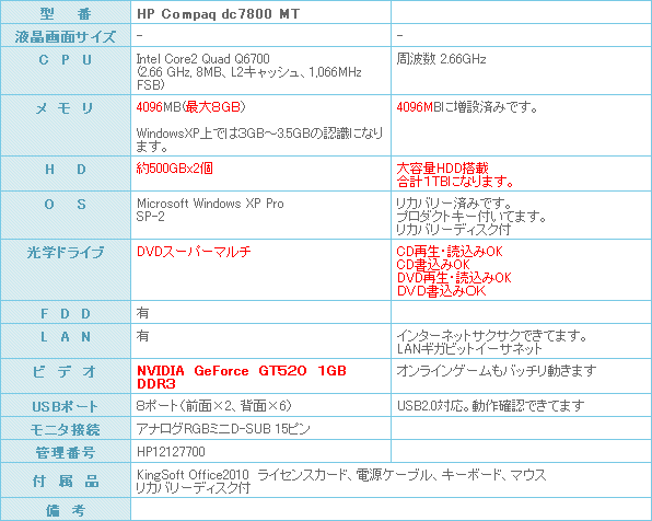 良品 激安の中古パソコン 送料無料&税込み 37,800円!!