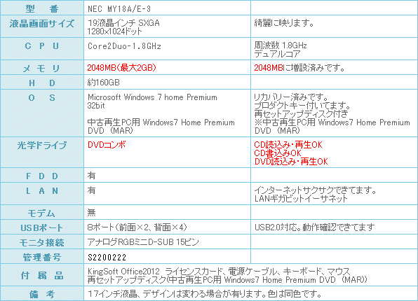 Windows7搭載のお買得な中古パソコンです。