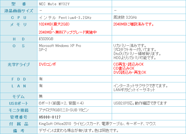 またまた、液晶を持っていないけど、こちらの単体をご希望のお客様へ朗報です。店長にお任せ液晶をご注文下さい。通常色指定なしですが、白色で合わせて販売させて頂きます。 液晶をセットでも\24,799円でこちらのスペックのパソコンはかなりお買得な商品になります。