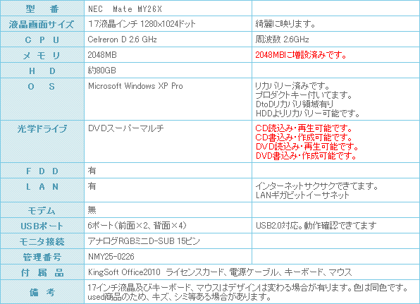 インターネット、メール、ワープロ、表計算、通常の事務処理やレポート作成等でしたら、このままのスペックで十分に使えるかと思います。