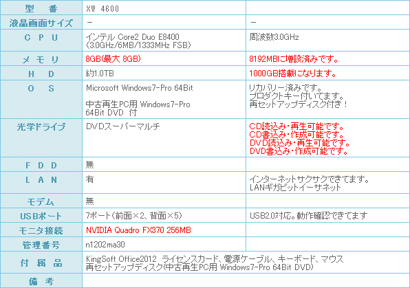 中古再生PC用 Windows7-Pro 64Bit DVD付きになります。