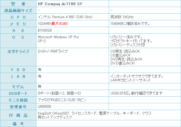 Pen4-3.4GHz搭載のハイスペックデスクです。 速いです。 メモリーたっぷり1024MBまで増設済みです。 ハードディスクも余裕の160GB搭載です。 XP-Proセットアップ済みなので、到着後直ぐにご利用になれます。