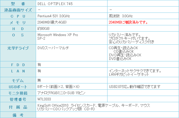 まだまだ、新しいモデルのDELL OptiPlex 745になります。
