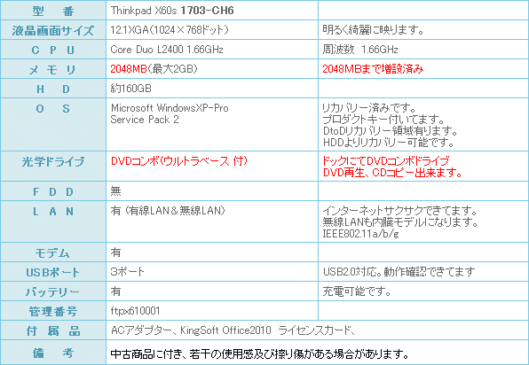 格好良いThinkPad X60sが入荷しました。 ばっりち決まっています。やっぱりIBMと言うお客様へはオススメです。