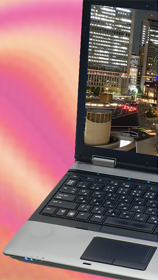 解像度<1,366×768>。 内でも外でも、使い勝手の幅がとても広いノートPCです。