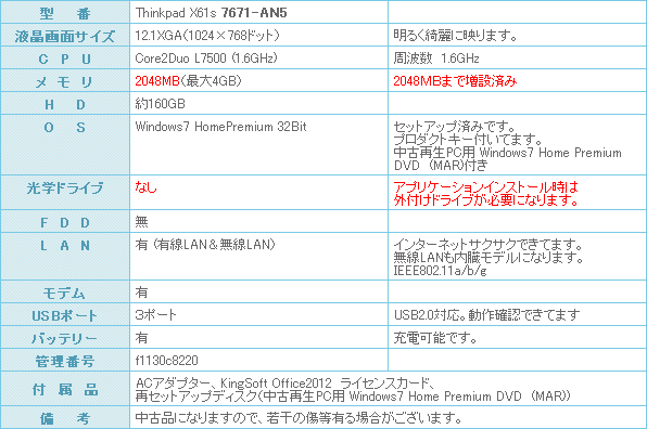 もちろん、再セットアップ時の中古再生PC用 Windows7 Home Premium DVDも付いています。