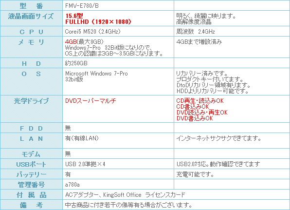 高解像液晶搭載のハイスペック中古パソコンになります。