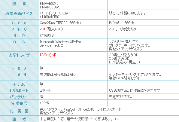 持ち運びに便利ば富士通 LIFEBOOK FMV-S8245になります。
