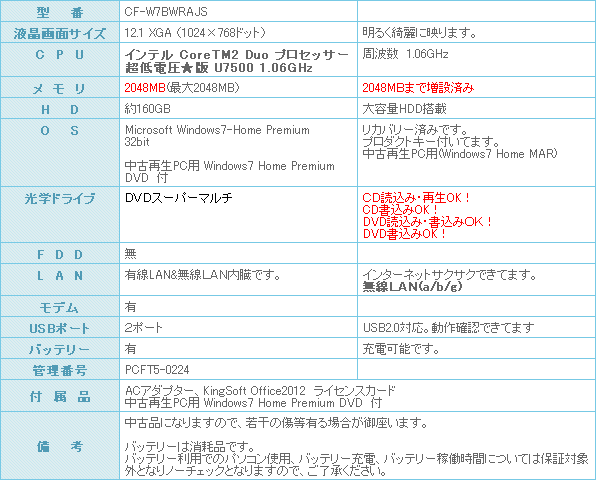 CPUはCore2Duo U7500 (1.06GHz)(超低電圧版搭載になります。