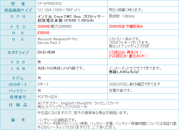 CPUはCore2Duo U7500 (1.06GHz)(超低電圧版搭載になります。