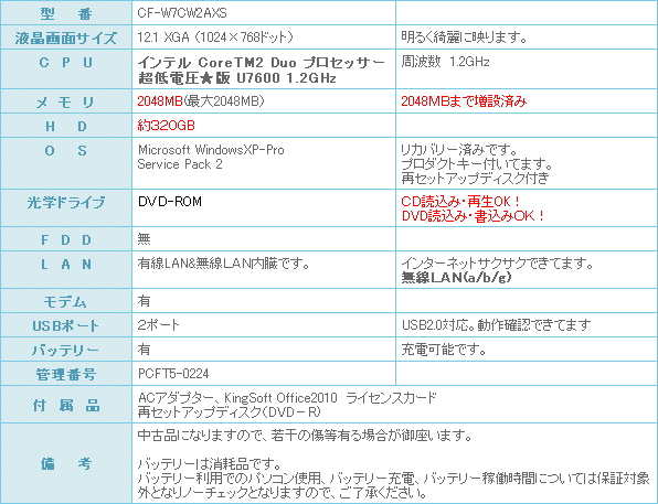 CPUはCore2Duo U7600 (1.2GHz)(超低電圧版搭載になります。