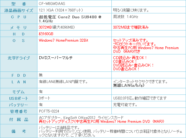 満足仕様のCF−W8が送料&税込み 21,900円!!