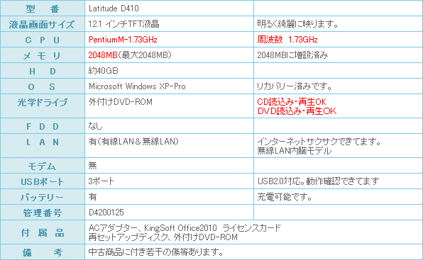 DELL LATITUDE D410
