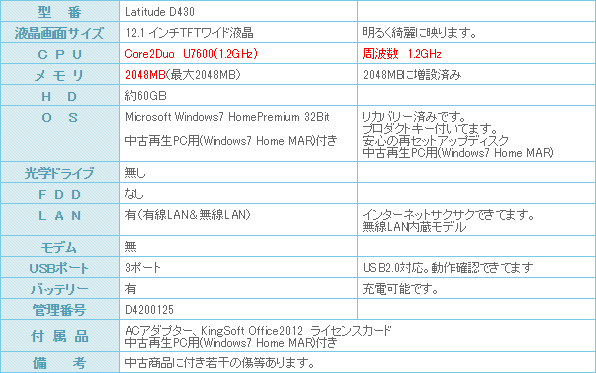 マイクロソフト社提供の中古再生PC用(Windows7 Home MAR)にてセットアップ済みです。もちろん中古再生PC用(Windows7 Home