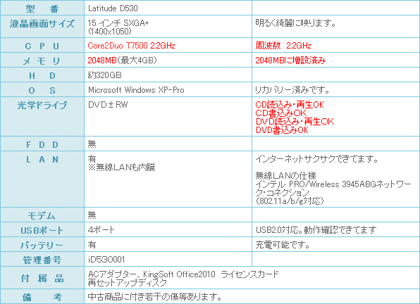 DELL Latitude D530 ハイパワーノートのご紹介です。