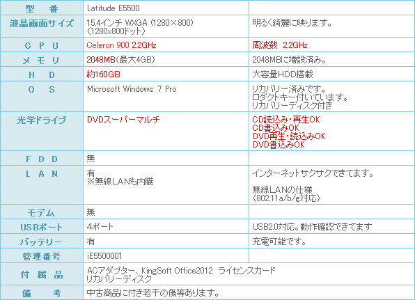 DELL Latitude E5500 Windows7搭載モデルになります。