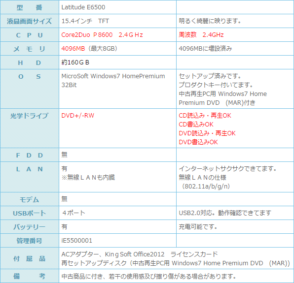 もちろん、再セットアップ時の中古再生PC用 Windows7 Home Premium DVDも付いています。