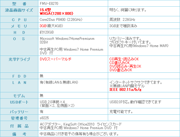 持ち運びに便利ば富士通 FMV-E8270になります。