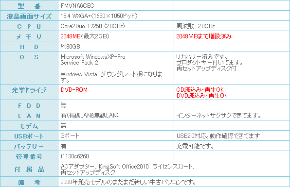 使えるノートパソコンです。お安くご提供させて頂きます。