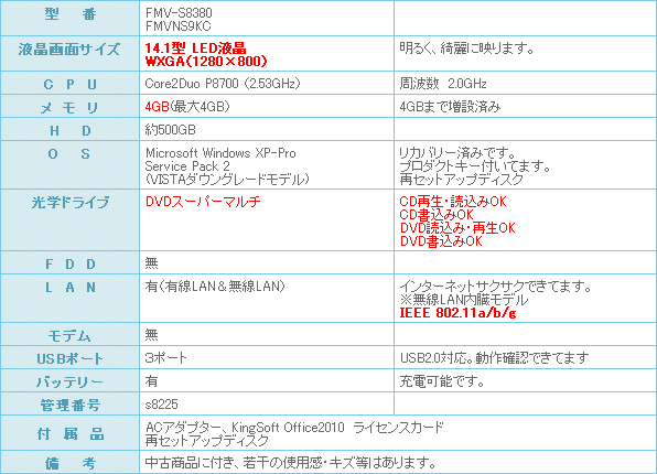 持ち運びに便利ば富士通 LIFEBOOK FMV-S8380になります。