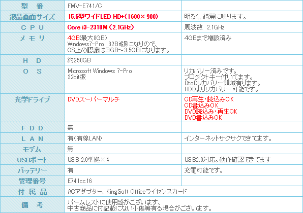 液晶サイズは高解像度液晶15.6型(1600×900) になります。・