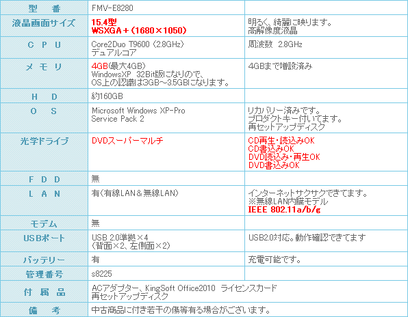 さらに、FMV-E8280最高峰モデルになります。