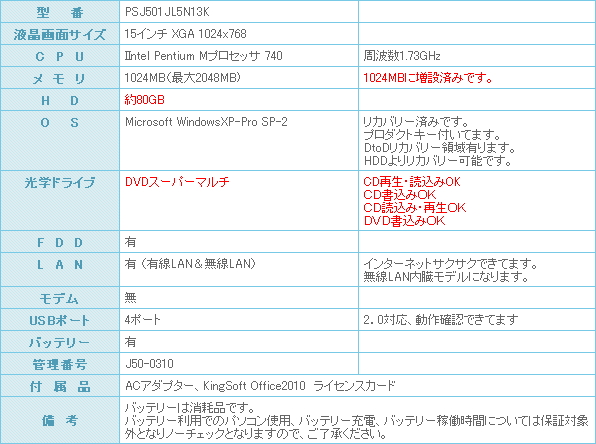 液晶もフラットの15インチディスプレイになりますので、文書作成や事務処理等には使い易いパソコンかと思います。