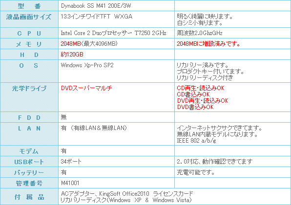 忘れていました。こちらのパソコンはWindows Vistaのダウグレードモデルになります。