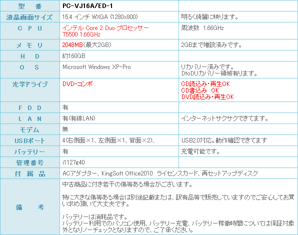Core2Duo搭載のマシンになります。 Core 2 Duo プロセッサー T5500 1.66GHz搭載です。 オンラインゲームもお任せ下さい。
