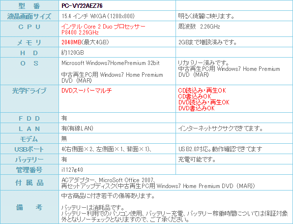 Core 2 Duo プロセッサー P8400 2.26GHz搭載です。