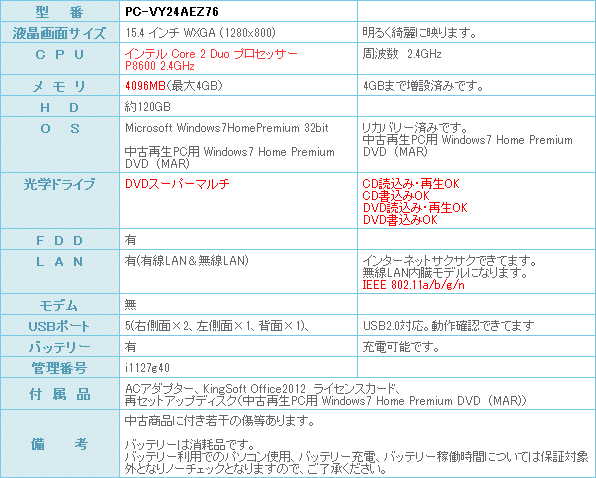 Core 2 Duo プロセッサー P8600 2.4GHz搭載です。