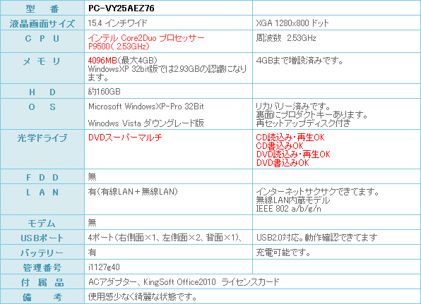 Core2Duo P9500 2.53GHz 搭載のハイスペックマシンになります。