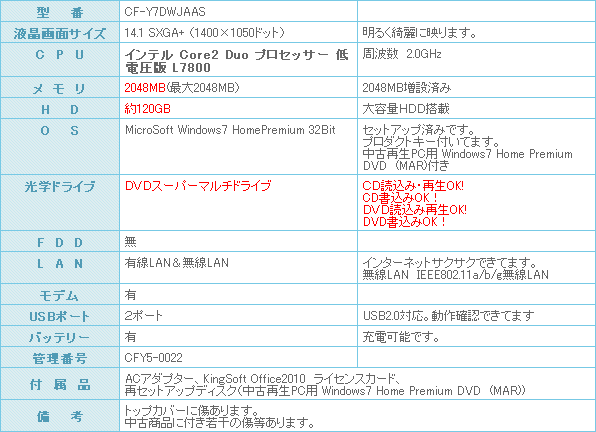 人気のCF-Y7シリーズです。