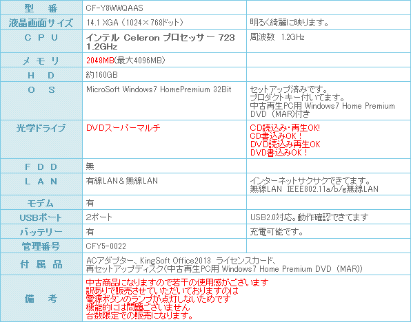 人気のCF-Y8シリーズです。