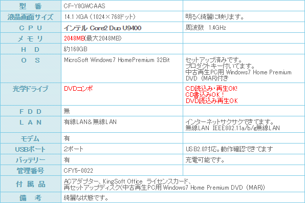 Windows7-HomePremiumセットアップ済みなので、到着後直ぐにご利用になれます。