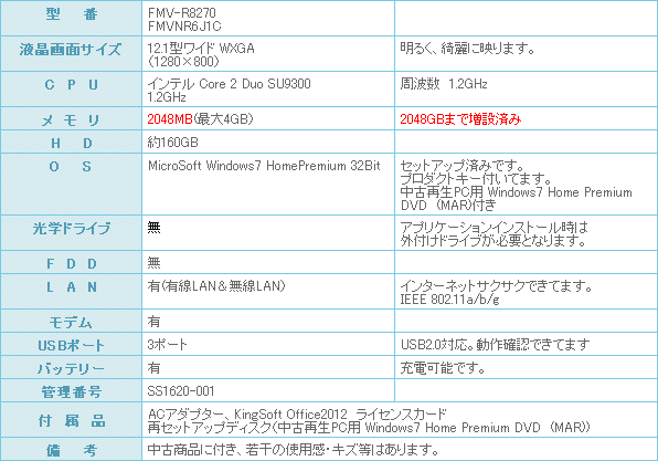軽量ボディーの富士通 LIFEBOOK FMV-B8270になります。
