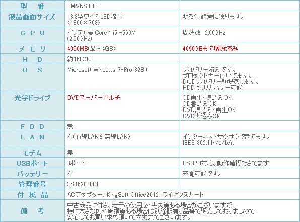 メモリー4GBに増設済みです。