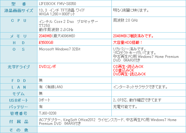 安心の富士通(FUJITSU)LIFEBOOK入荷です。