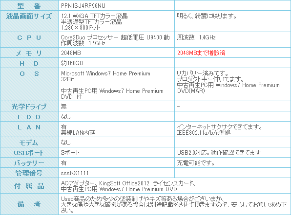 CPUはCore2Duo プロセッサー 超低電圧 U9400 動作周波数 1.4GHz搭載とモバイルPCには持った無い位の威力を発揮します。